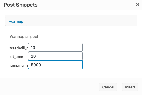 Post Snippets modal. That’s a lot of jumping jacks!