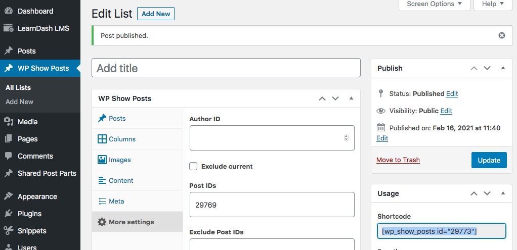 Step #4: Add new “WP Show Posts” post